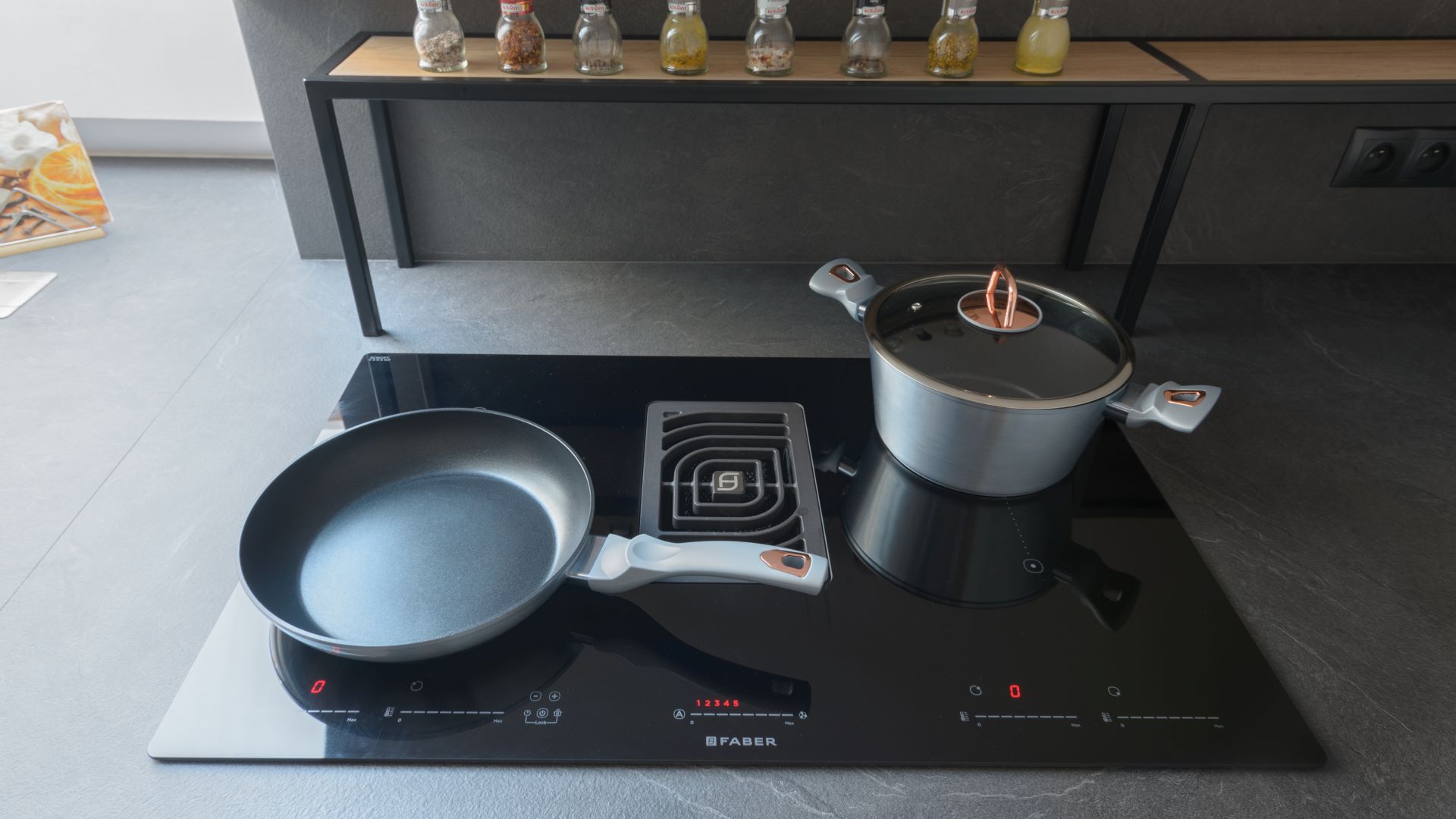 Tento krásný projekt byl od samého začátku skutečnou výzvou, kde standardní řešení bylo zcela mimo hru. Zkosení není pouze u stropu, ale také u pravé boční stěny. Další komplikací byly jinak krásné dřevěné trámy, které zcela znemožnily jakoukoliv ostrůvkovou variantu.