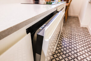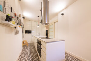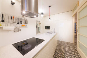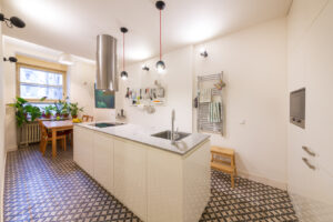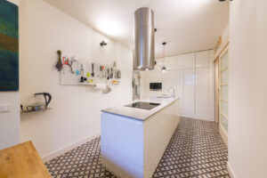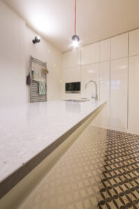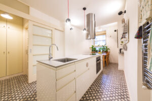 Tato kuchyně je tak příkladem, jak i v menším prostoru, a navzdory stavebním komplikacím, lze vytvořit vysoce funkční, elegantní a moderní interiér.