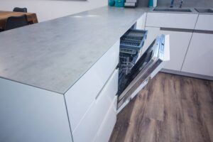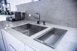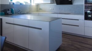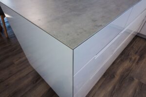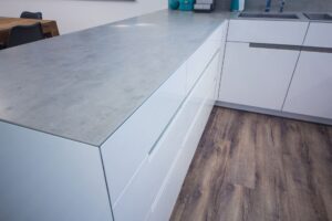 Keramická pracovní deska v dekoru betonu je elegantním a moderním doplňkem jakékoli kuchyně. Pracovní desku v dekoru betonu ale můžeme vyrobit také z jiných materiálů, jako je tvrzený kámen, kompaktní laminát nebo základní dřevotříska. Litý beton sice vypadá skvěle, ale díky jeho naprosté nepraktičnosti jej do kuchyně vůbce nenabízíme.