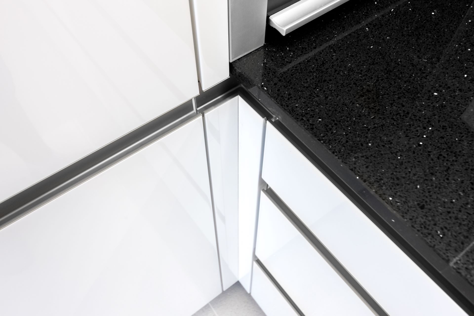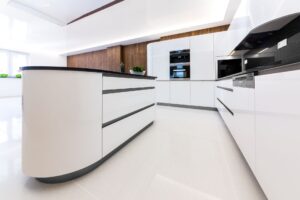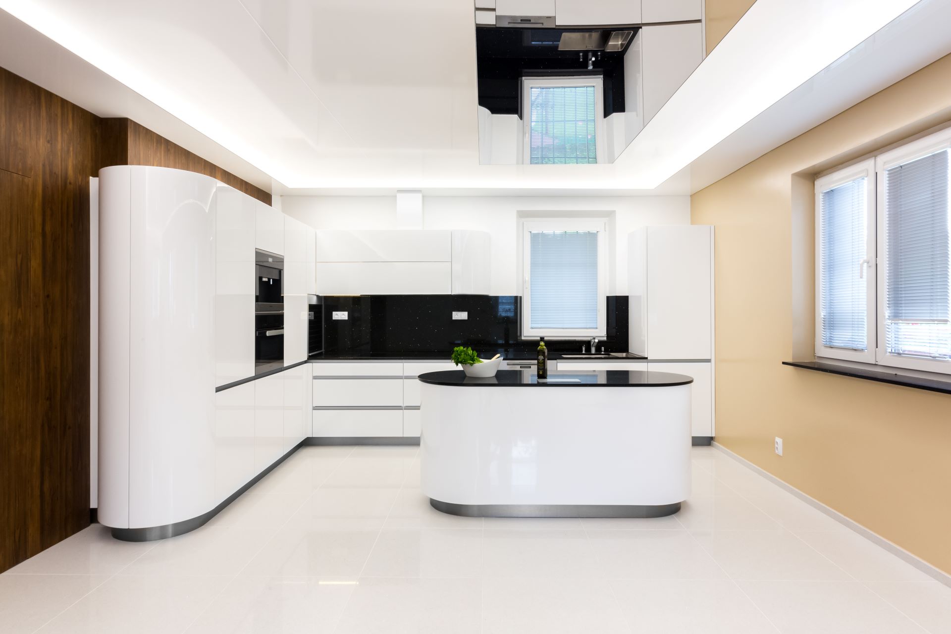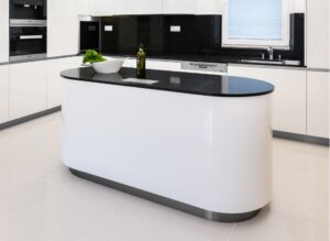 Luxusní lakovaná kuchyň s oblouky, pracovní deska Technistone