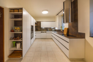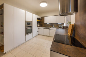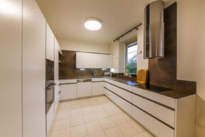 Rodinné domy z devadesátých let se často vyznačují oddělenými a spíše kompaktními prostory – a kuchyně v nich nebývají výjimkou. Přesto bylo možné i v kuchyni tradiční velikosti vytvořit moderní a vysoce funkční prostor, který přesně odpovídá potřebám seniorního páru. Klíčovým slovem se stala ergonomie a chytré řešení pro těžké spotřebiče.