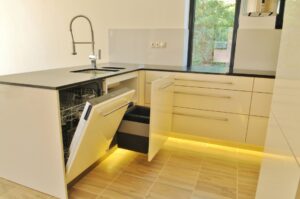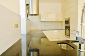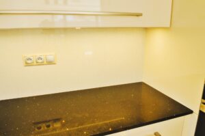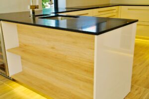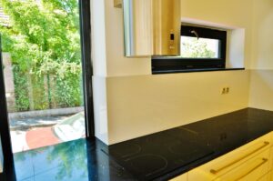 Pro pracovní desku byl zvolen osvědčený Technistone. Tento tvrzený kámen je synonymem pro vysokou odolnost proti poškrábání, nárazu a skvrnám, a zároveň má minimální nasákavost.