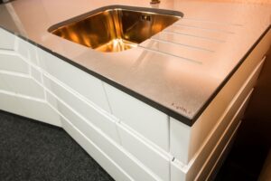 Poloostrůvek z kompaktního laminátu v dekoru kamene