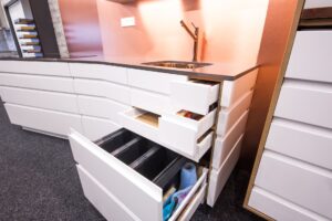 Kuchyň v moderním hávu: Vitrína á la vinotéka a kouzlo kompaktního laminátu