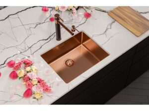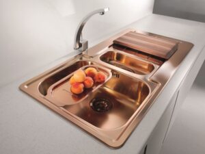 Baterie, dřezy, koše, zlaté, měděné, klasické